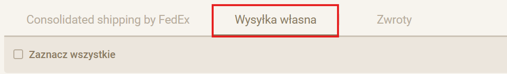 Wybierz zakładkę „Wysyłka własna” > i kliknij przycisk „Dodaj”