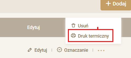 Przycisk „Druk Termiczny” – dokument do wydrukowania na drukarce termicznej