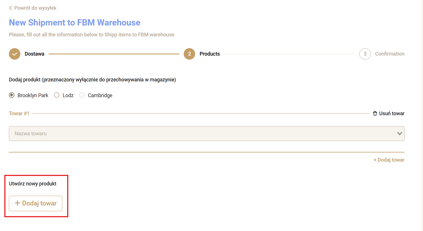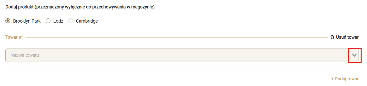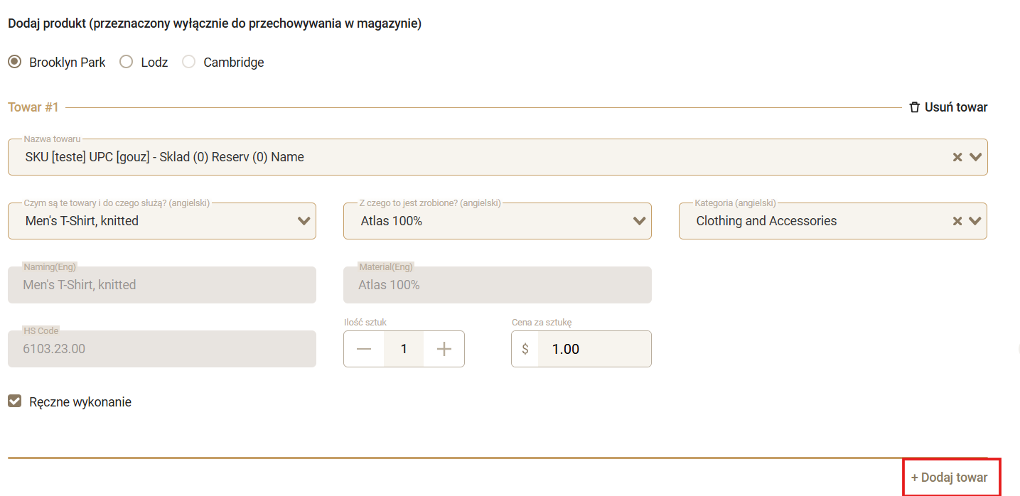 Aby dodać kolejny zapisany produkt, kliknij „Dodaj towar”