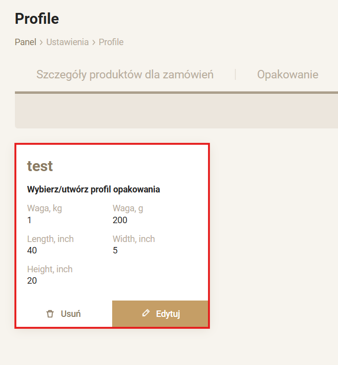 Profil został utworzony i jest gotowy do szybkiego wypełnienia danymi w przesyłce.
