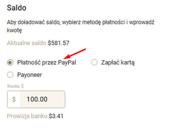 Saldo w systemie SkladUSA można doładować kartą, przez Payoneer, PayPal lub przelewem bankowym.