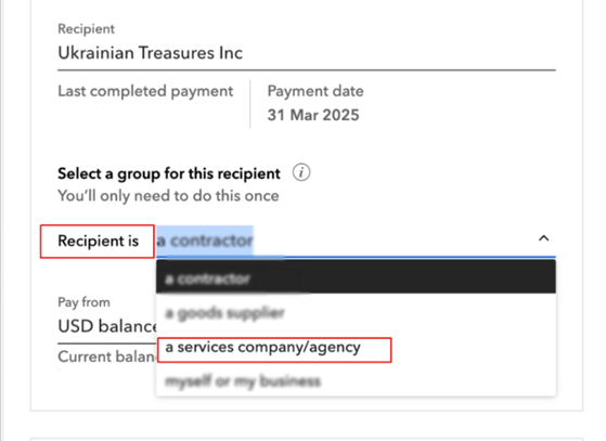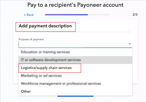 z listy celu płatności wybierz: Logistics/supply chain services.