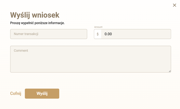 W polu „Numer transakcji” wpisz identyfikator transakcji (dostępny w szczegółach płatności w Payoneer lub w e-mailu potwierdzającym płatność).