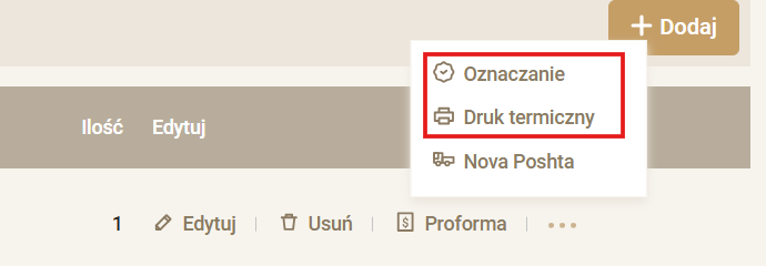 Po podsumowaniu proszę zapisać konsolidację i wydrukować do niej etykiety. Przycisk „Druk termiczny” jest przeznaczony do drukarki termicznej, natomiast przycisk „Oznaczenie” służy do wydruku na zwykłej drukarce.