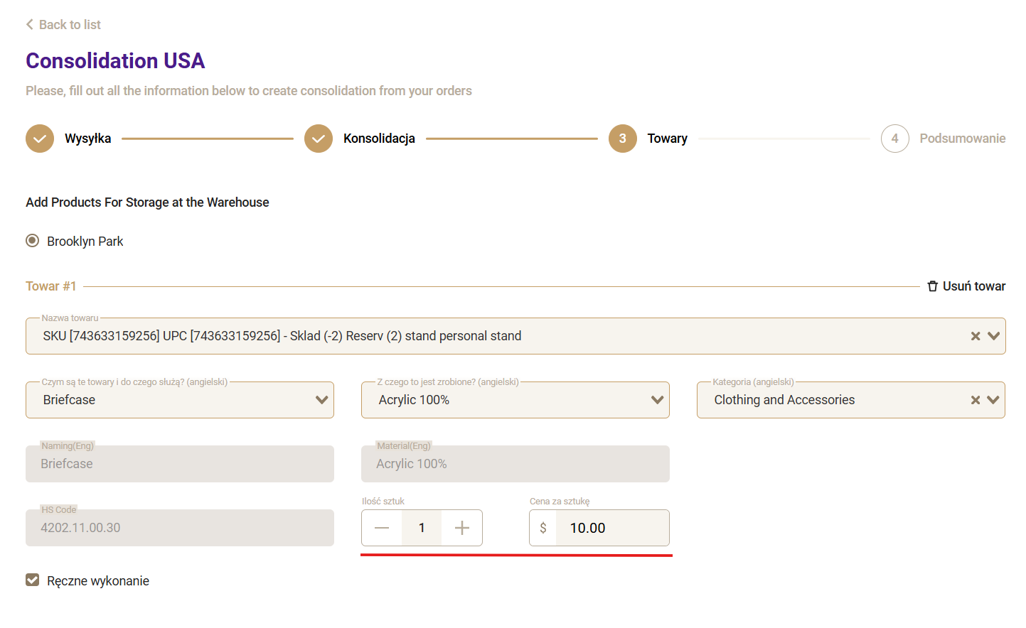 Jeśli chcesz wysłać towar do magazynu w USA, przejdź do zakładki „Easy Orders” > „Wysyłka do magazynu”