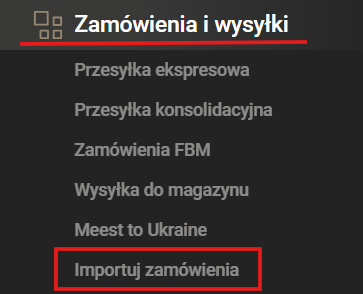 Zamówienie można utworzyć poprzez zakładkę zintegrowanych zamówień z platform handlowych, sekcja „Zamówienia i wysyłki” > „Import zamówienia”