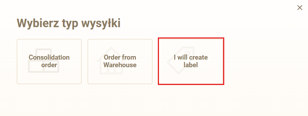 Wybierz typ wysyłki „I will create label”