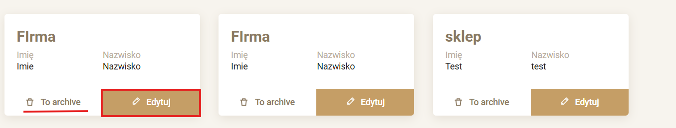 Tutaj istnieje możliwość ich edycji lub dodania nowego w razie potrzeby, albo przesłania do archiwum.