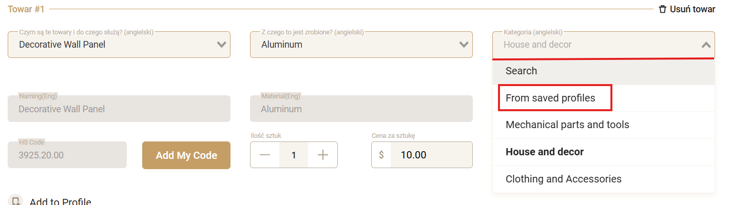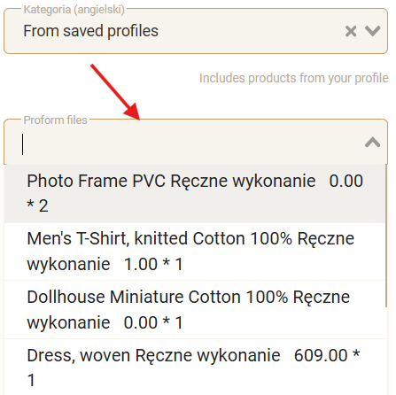 Gratuluję ! Twój profil towaru został utworzony. Podczas tworzenia zamówienia możesz wybrać jeden ze swoich profili produktu. Jeśli ilość towaru lub cena uległy zmianie, będziesz mieć możliwość edycji ilości i ceny.