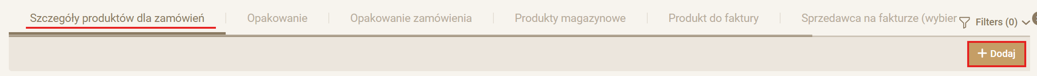 Wybierz zakładkę „Szczegóły produktów dla zamówień ” i kliknij przycisk „Dodaj”