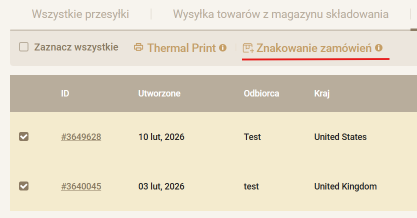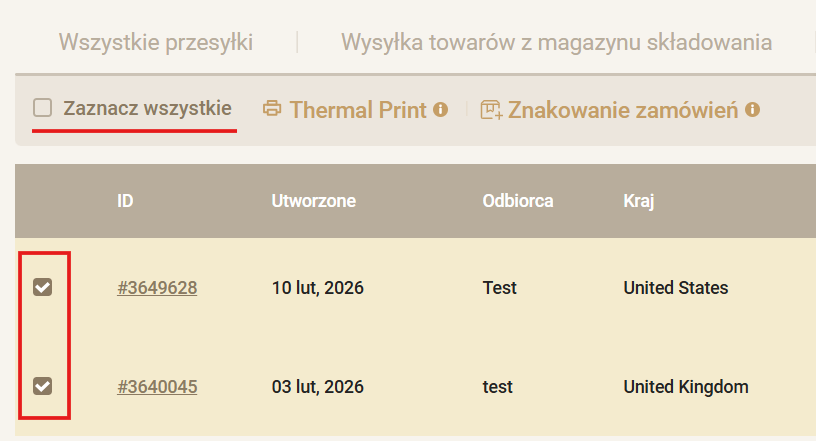 Zaznacz zamówienia ręcznie lub wybierz opcję „Zaznacz wszystkie”.