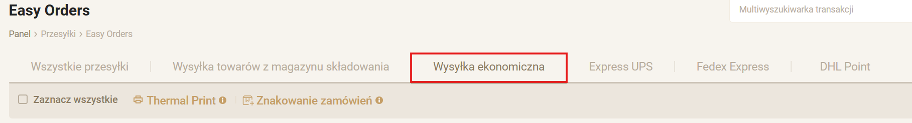 Przejdź do „Easy Orders”> „Przesyłki”